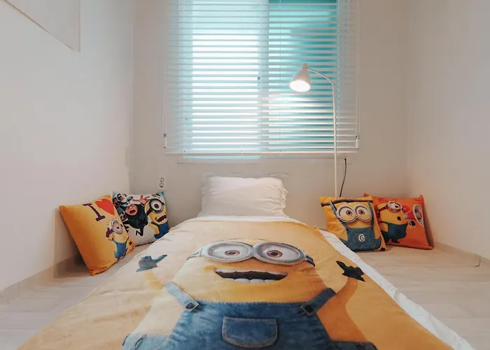A Minionz House #Happy Apartman vendégei számára ülősarkot, konyhát és nappalit biztosít, valamint olyan modern kényelmeket, mint a klímaberendezés. A szálláshely a kényelem fokozása érdekében külön WC-t és zuhanyzót biztosít. Továbbá a fürdőszobában a hajszárítót, törölközőket és papucsokat is élvezheti.